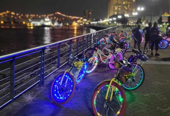 Light Up Bike Rental for night rides - rental and escorted. Rent everything you want for a memorable visit to Arts District Bikes in New Orleans Louisiana. Offering Bike Tours Escorted Night Rides and Light Up Bike Rentals.
